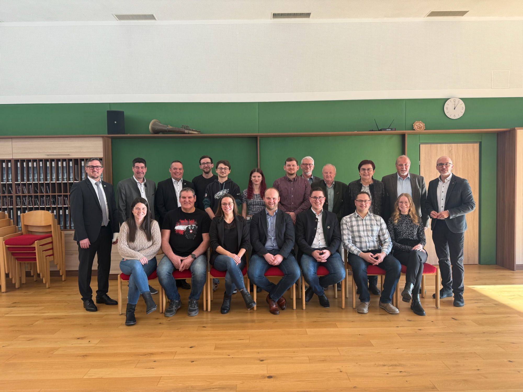 v.l.n.r.: Manuel Scherscher – Ortsvorsteher; Stefan Jandl – Kulturstadtrat; Gerhard Irxenmayer Stadtrat; Tobias Plank – Kassier Stv.; Martin Halbmayr – Archivar Stv.; Sophie Reickersdorfer – Schriftführerin Stv.; Raffael Karkulik – Archivar; Martin Danner – Beirat; Werner Brachner – Rechnungsprüfer; Bgm. Michaela Hinterholzer; Johannes Uiberlacker – Rechnungsprüfer; David Kalteis – Vizebürgermeister; Julia Ossmann – Schriftführerin; Karl Herbst – Kassier; Daniela Pum – Obmann Stv.; Thomas Führicht – Obmann; Lukas Siegl – Kapellmeister; Siegfried Nagelhofer – Kapellmeister Stv.; Theresa Danner – Jugendreferentin